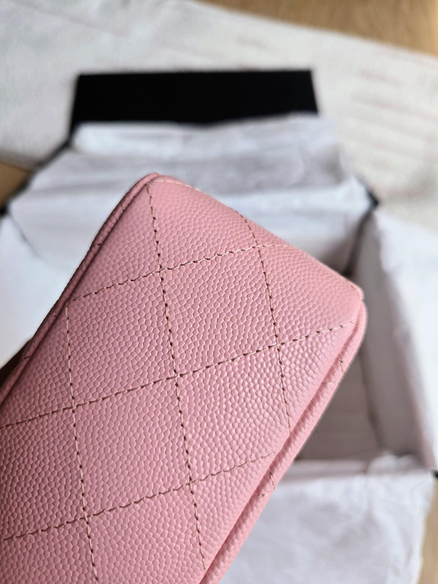 The most beautiful and best shade of pink from C. Durable scratch and water resistant caviar leather. Super rare, never used!
