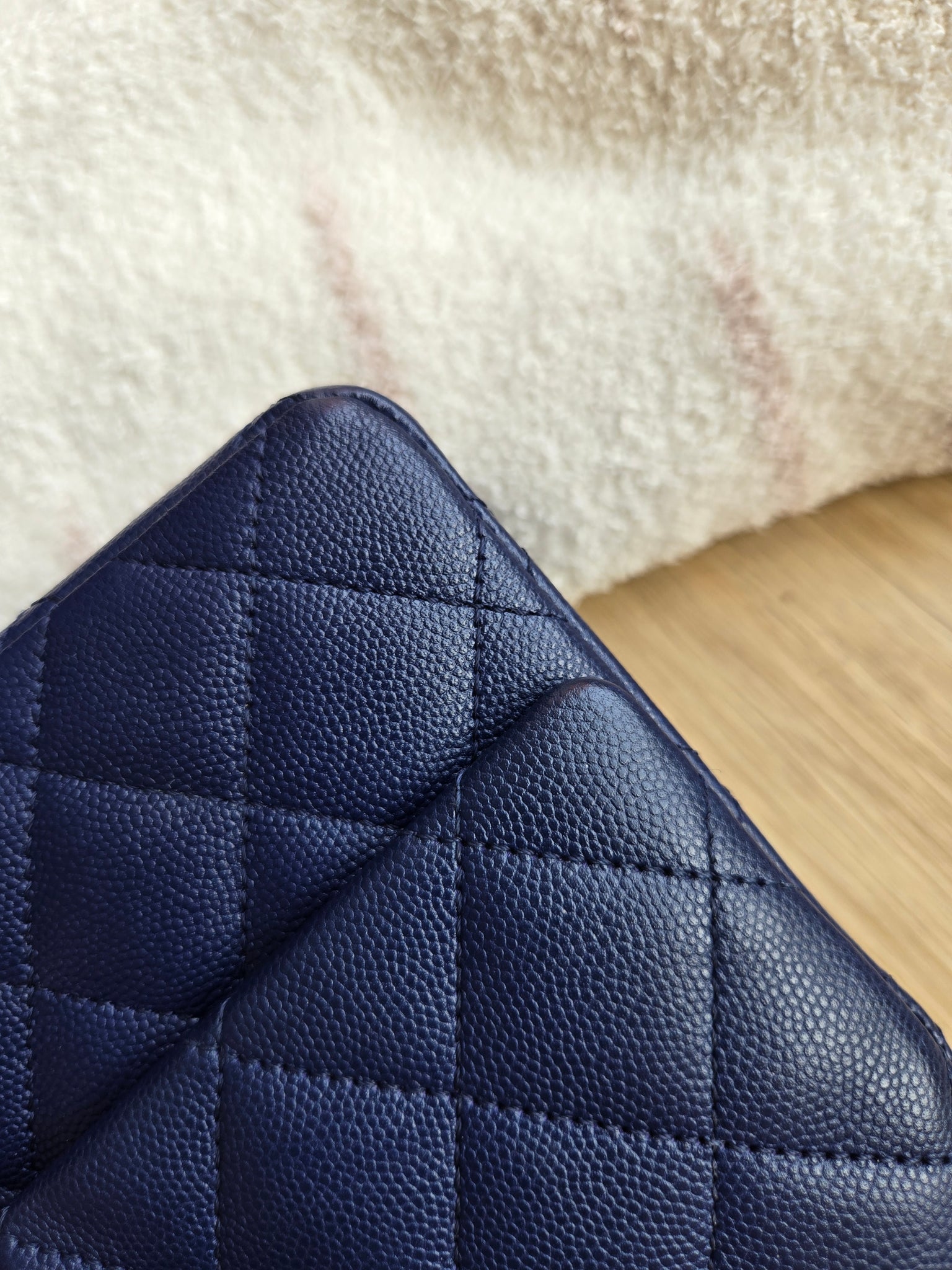 Perfect if youre looking for a budget friendly classic flap that can be worn daily without worry of too much logos. In durable water resistant caviar material, the 226 size fits everything you'd need for the day without having to squeeze.