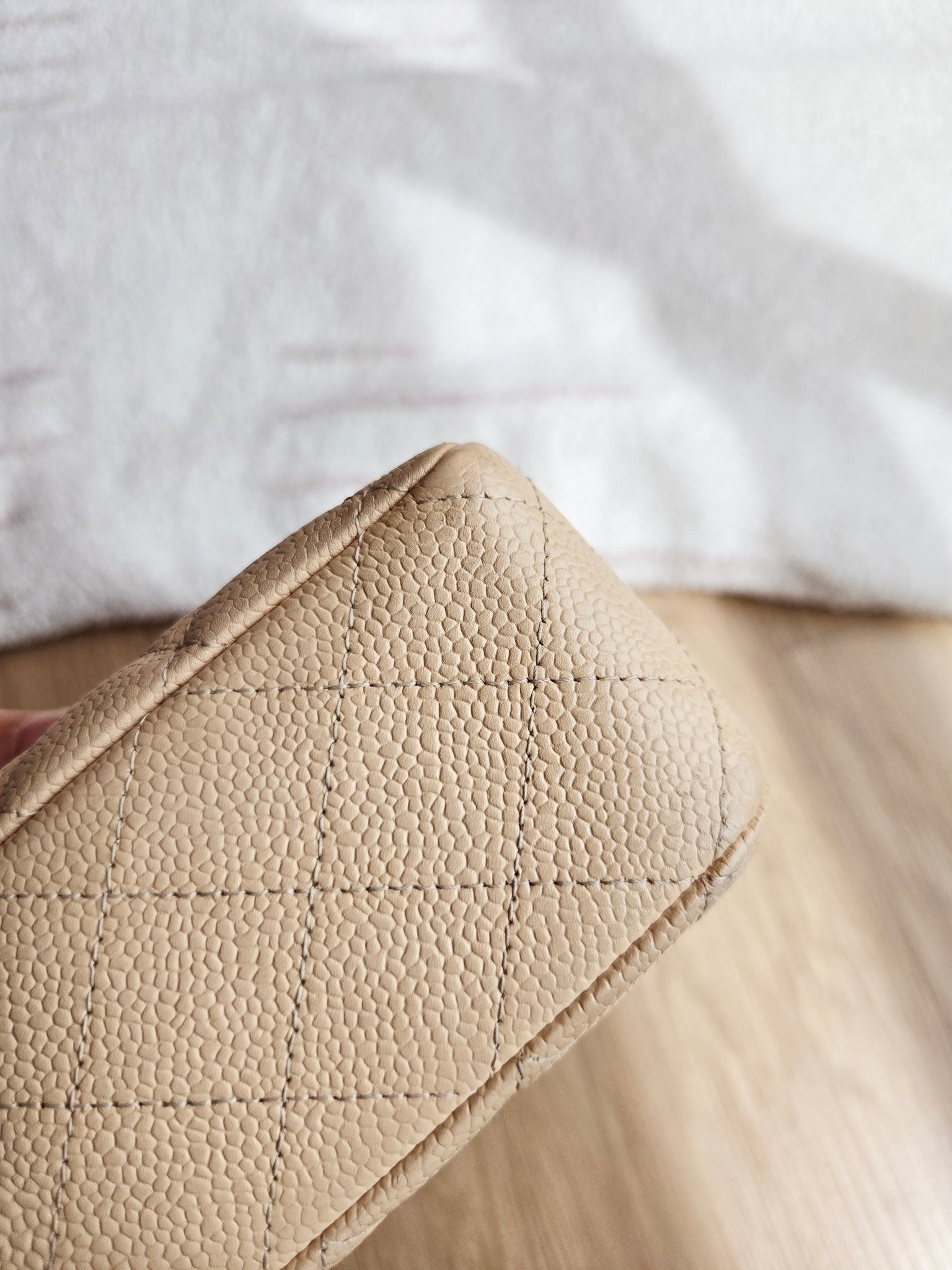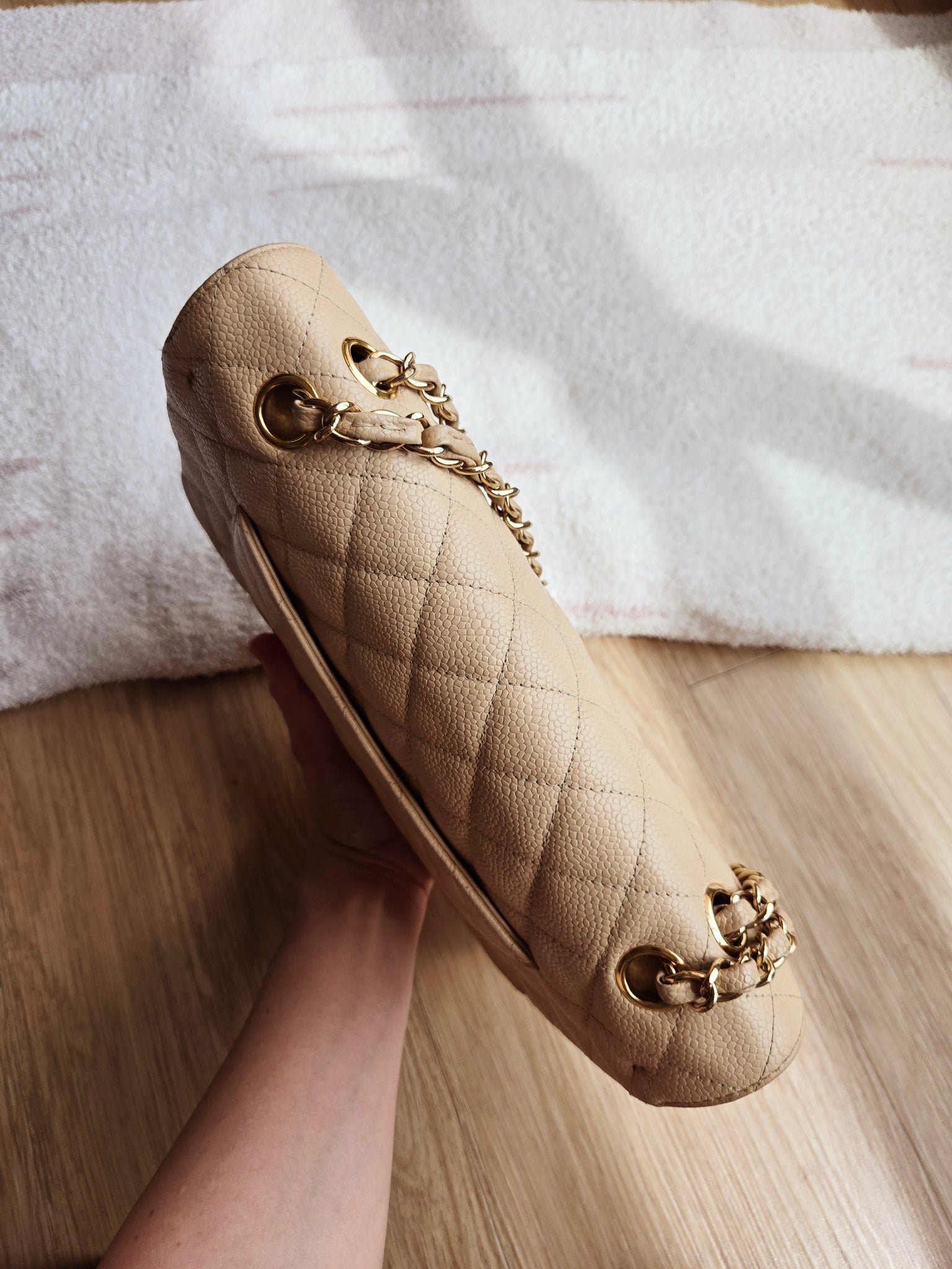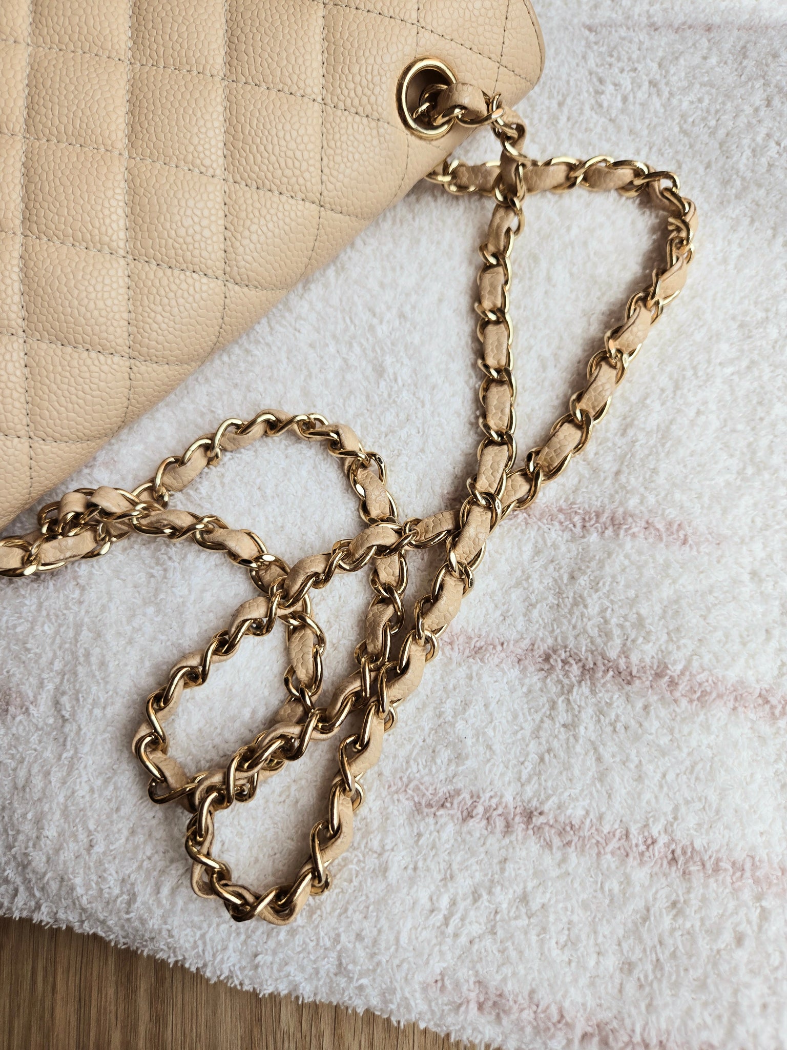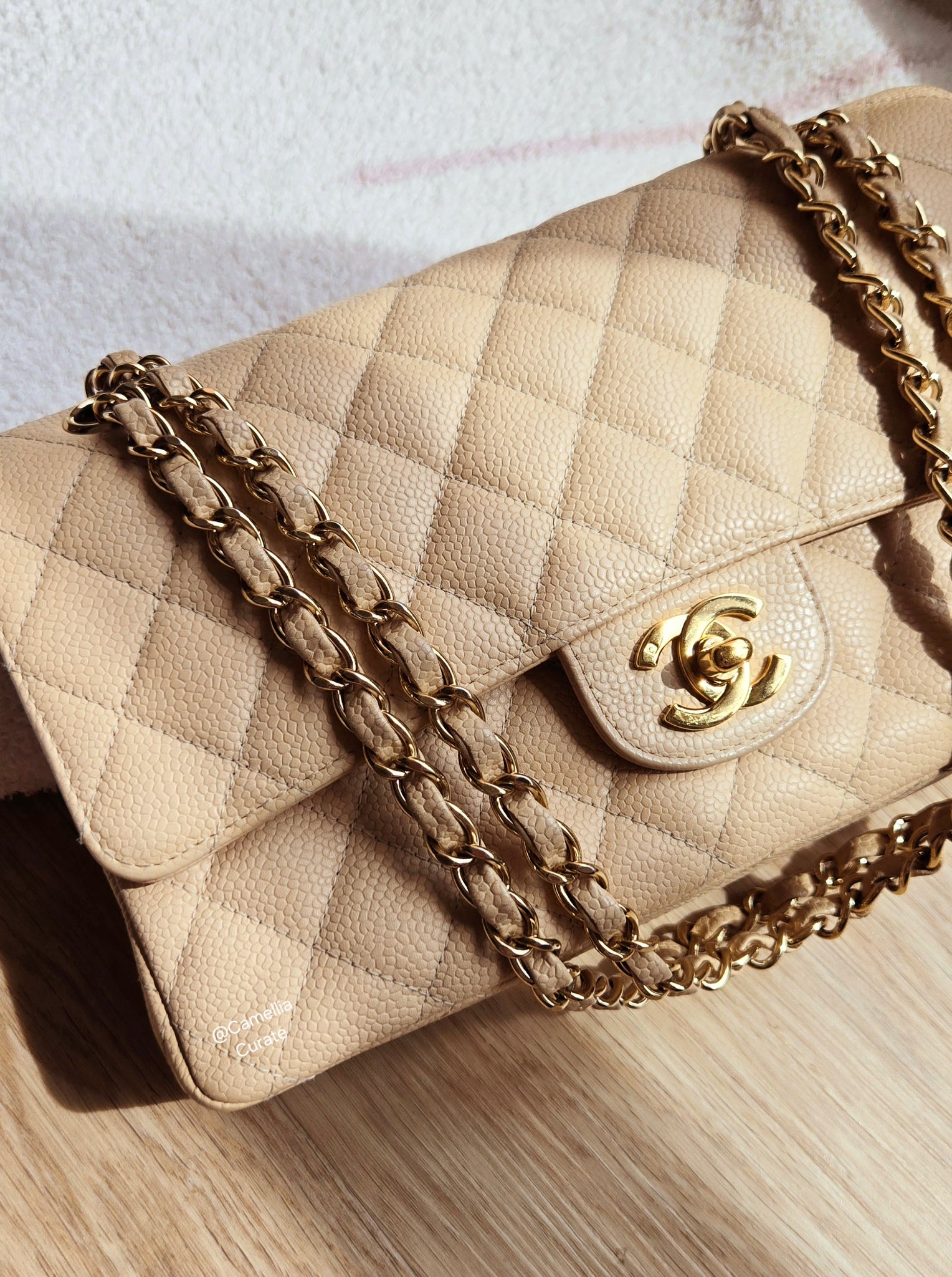 Chanel Classic Medium Flap Beige Claire Caviar 24k Gold