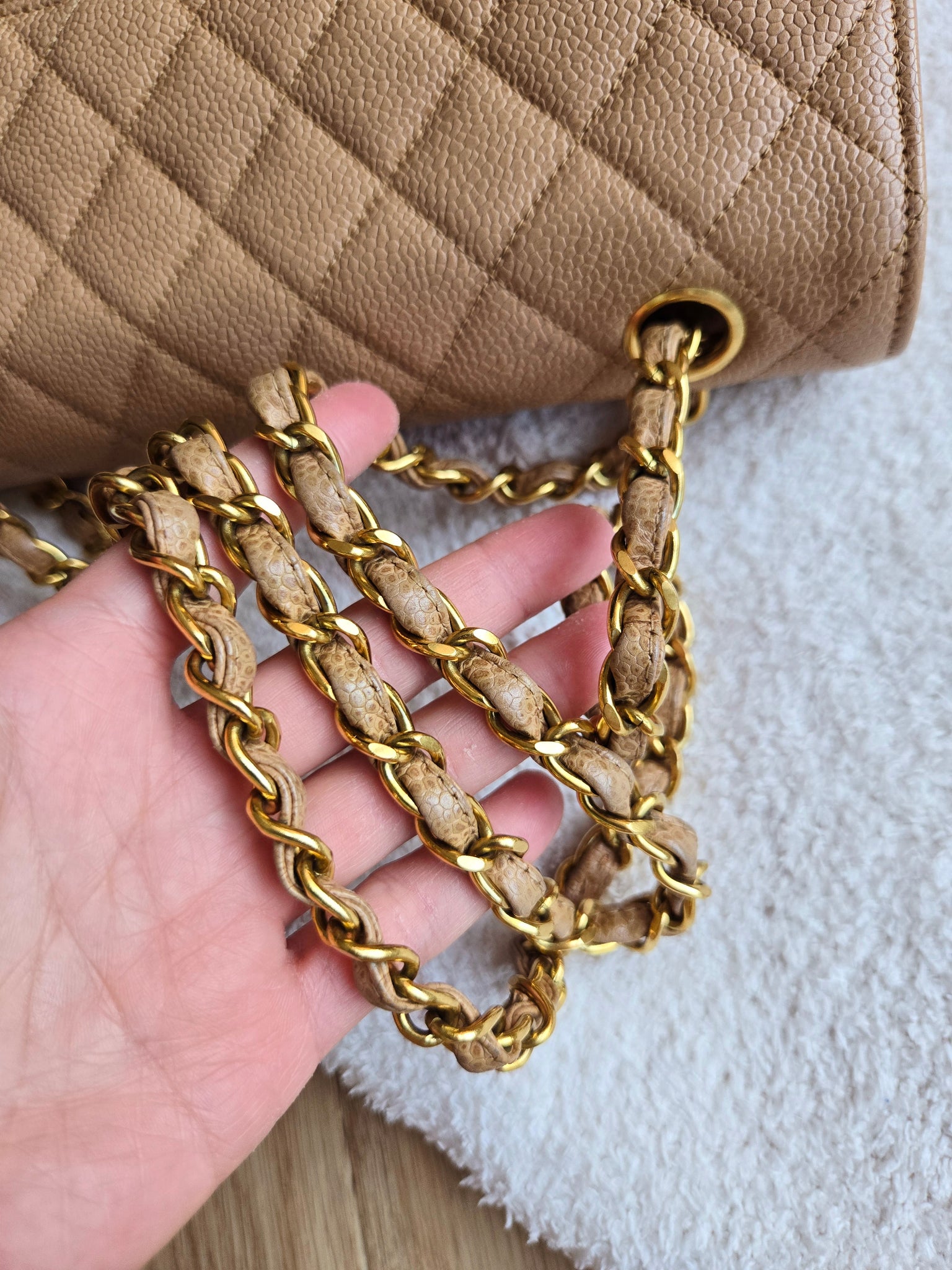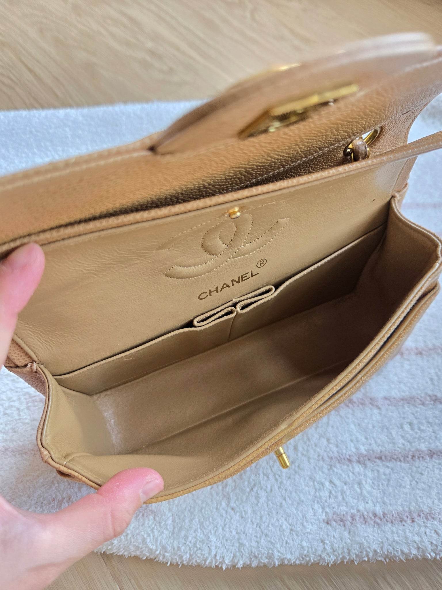Half the price of retail, but made with very durable vintage caviar back when bags were carefully crafted with the best leathers! Gorgeous dark beige neutral shade that goes with everything! 24k bright gold✨️